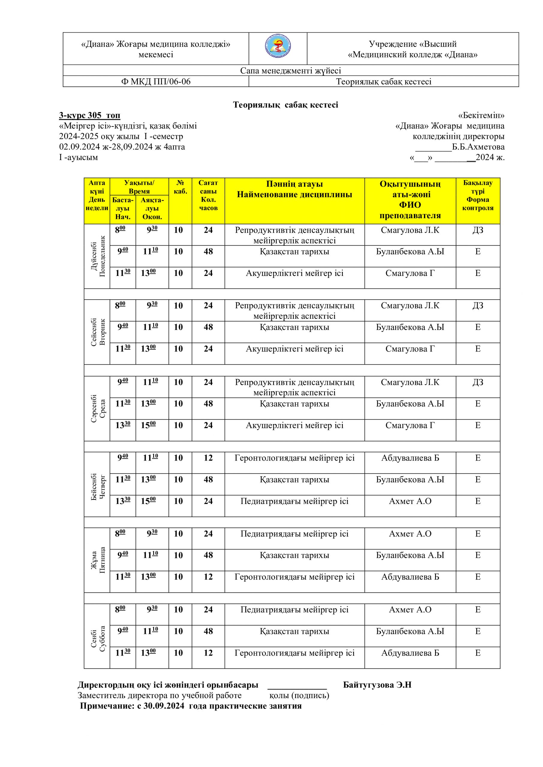 Специальность Сестринское дело, квалификация Медицинская сестра общей практики 2,3,4 курс — 1 семестр
