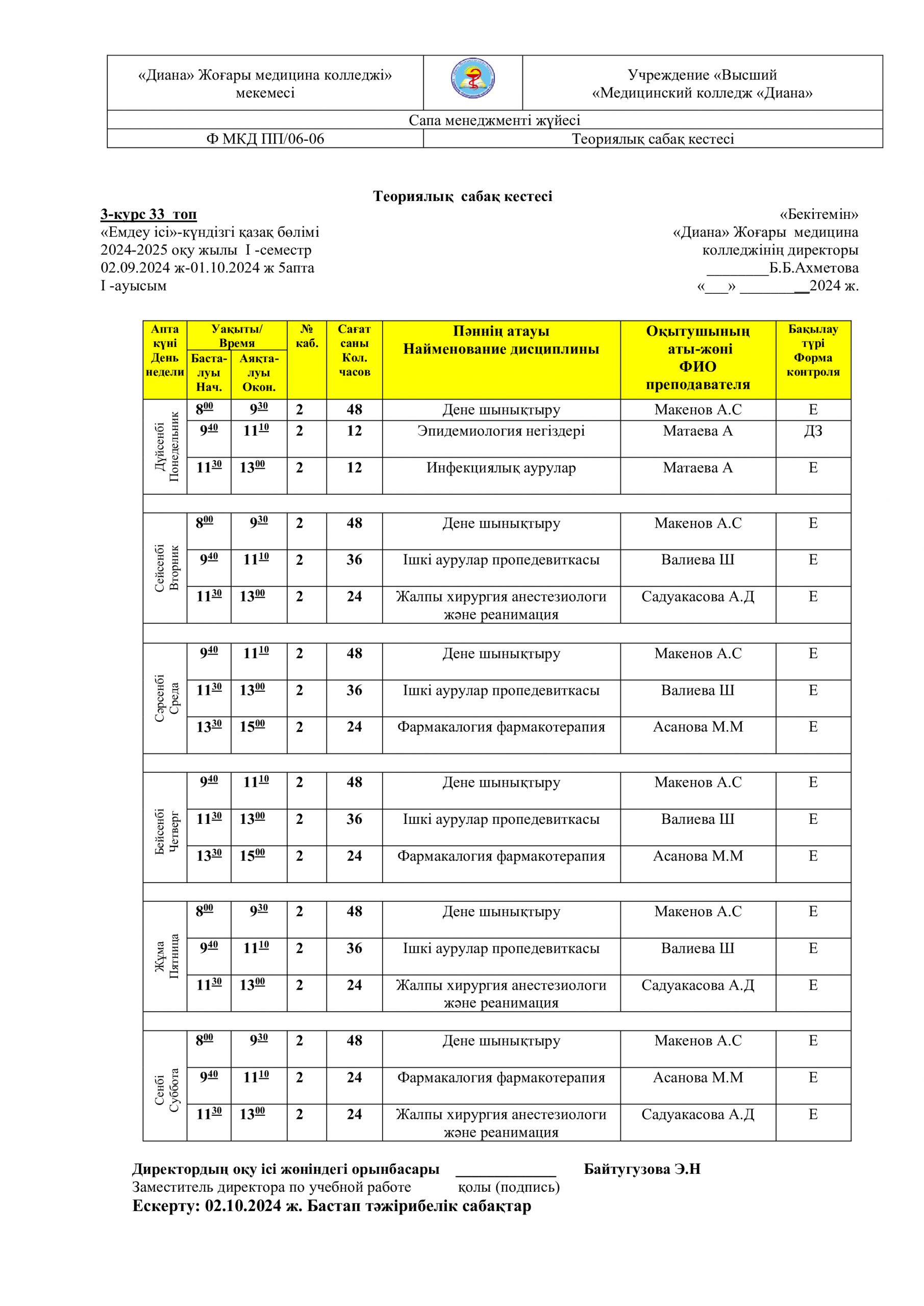 • Специальность Сестринское дело, квалификация Медицинская сестра общей практики 2,3,4 курс — 1 семестр
